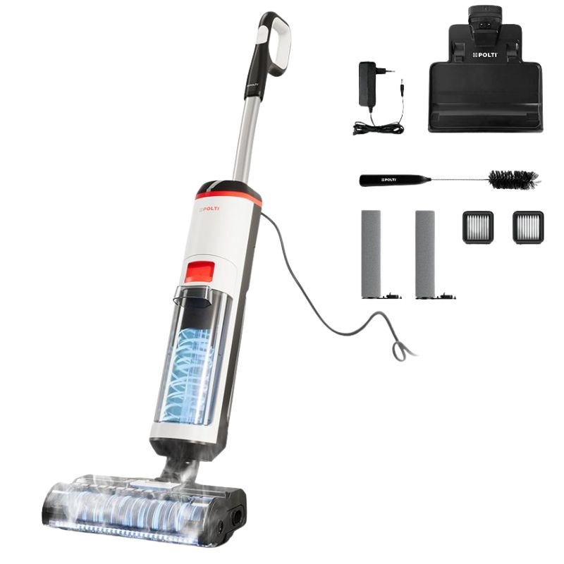 Polti Rollysteam WD10C est un nettoyeur de sols multifonction avancé qui aspire, lave et assainit à la vapeur, éliminant jusqu'à 99,999 % des bactéries, germes et champignons, le tout sans utiliser de produits chimiques.