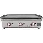 Barbecue à gaz professionnel avec graisseur frontal de grande capacité et facilement démontable en acier bleui.