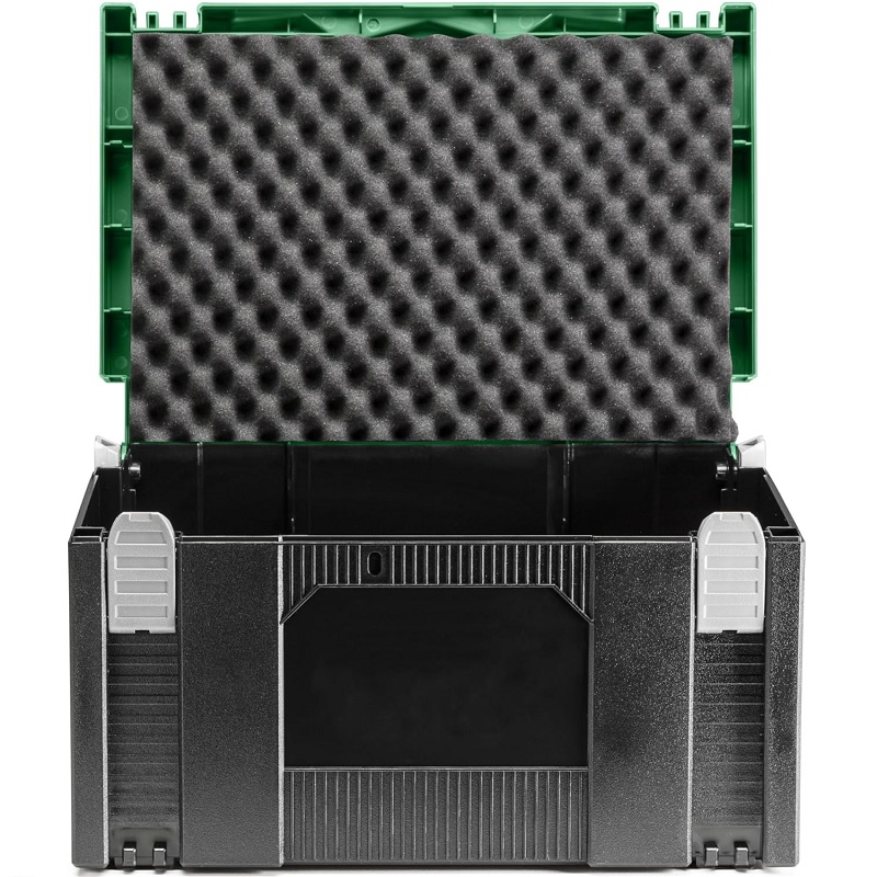Avec mousse amortissante, découvrez la mallette empilable modèle Hikoki, idéale pour ranger vos outils et les garder à portée de main, son design compact et fonctionnel facilite son transport et son rangement, en faisant le compagnon idéal des professionnels et des bricoleurs.