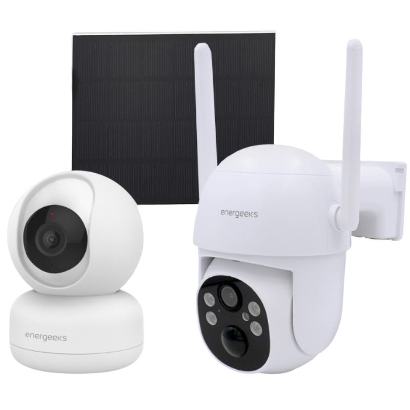 Caméra Ebergeeks Kit extérieure avec batterie et panneau solaire 5W et caméra Wi-Fi intérieure.