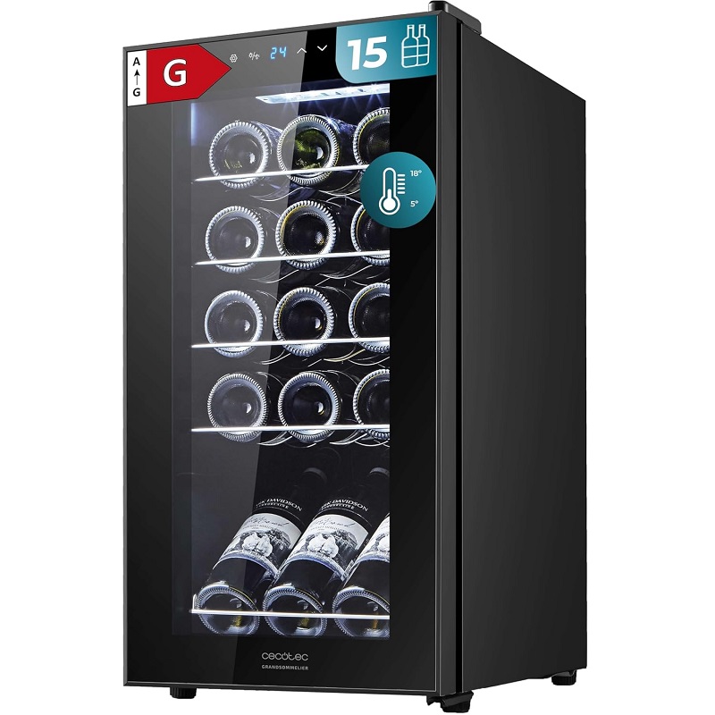 Cave à vin Cecotec Bolero GrandSommelier 1550 Black, capacité de 15 bouteilles