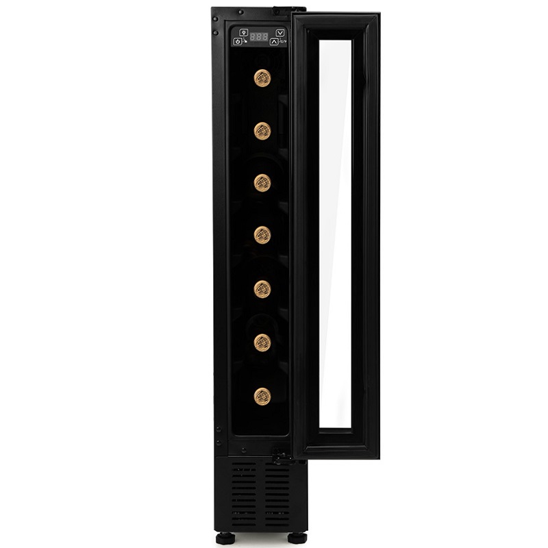 La cave à vin à compresseur VCE 700 est la solution idéale pour les amateurs de vin souhaitant conserver leur collection dans un espace réduit, sans compromis sur la qualité ni sur la performance. D'une capacité de 7 bouteilles, ce modèle s'intègre harmonieusement dans toutes les cuisines et tous les placards grâce à son design encastrable, offrant une esthétique à la fois élégante et fonctionnelle.