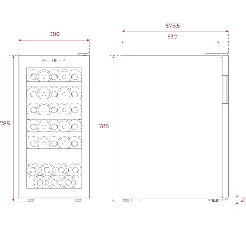 Contrôle de l'humidité, maintien d'un taux d'humidité entre 55 % et 75 %, niveau optimal pour éviter le dessèchement du bouchon et préserver la qualité et les arômes de chaque bouteille. Double vitrage fumé. La porte à double vitrage empêche la pénétration de la lumière et des rayons UV, protégeant ainsi les bouteilles d'un vieillissement prématuré et de la perte de saveur.