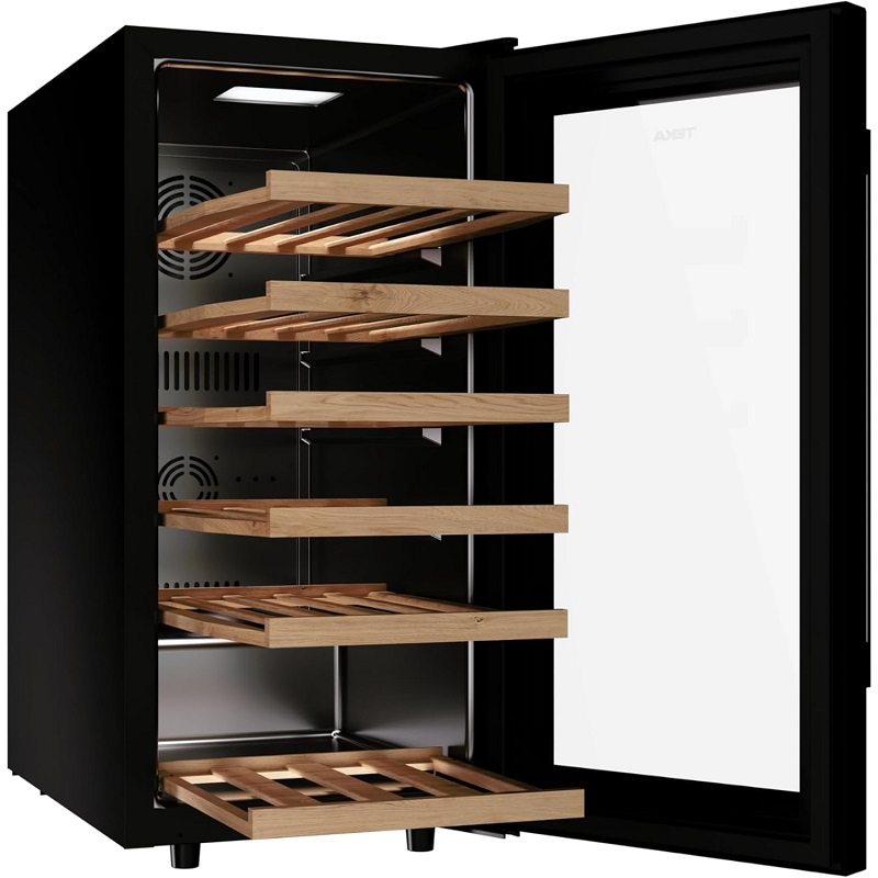 Système anti-vibrations. Cette technologie absorbe les vibrations, préservant la qualité et les arômes et évitant la « fatigue du vin ». Technologie SurroundAir. Un système de refroidissement innovant utilisant de puissants ventilateurs pour une circulation d'air optimale et une température constante et homogène à l'intérieur de la cave. Aménagement intérieur soigné. Les clayettes en bois avec glissières télescopiques réduisent les vibrations et préservent les arômes des vins de garde. Leur hauteur est réglable pour accueillir des bouteilles de différentes tailles.