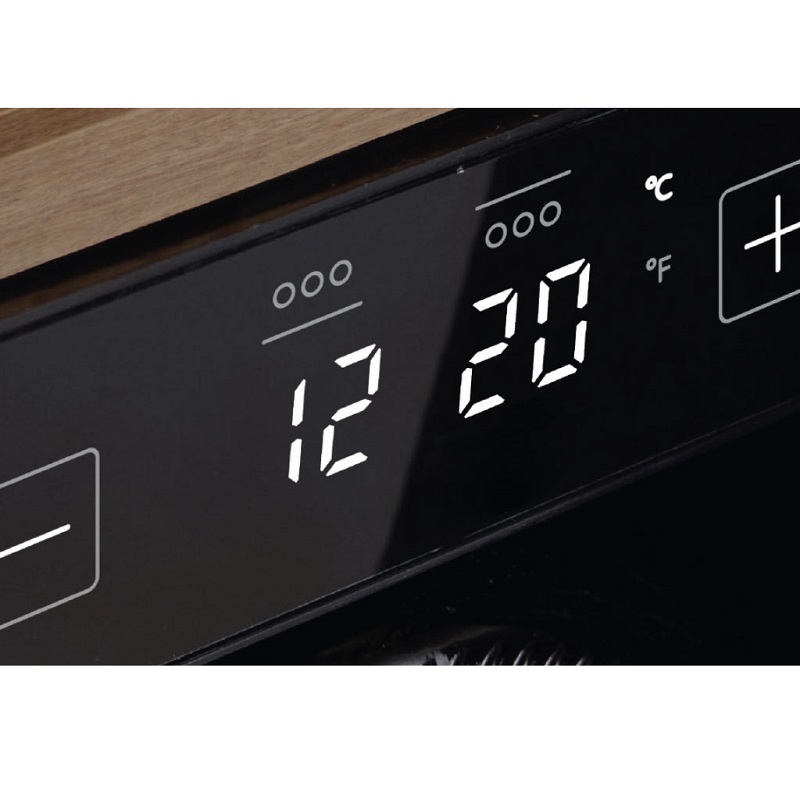 La cave à vin sous plan de Frecan, avec seulement 30 cm de large et une capacité de 16 bouteilles, est parfaite pour les petits espaces. Elle dispose de 2 zones de température indépendantes, idéales pour les vins blancs et rouges, et se contrôle facilement grâce à un panneau Touch Control. Son éclairage LED réglable de 3000K ajoute une touche élégante tout en protégeant les bouteilles. Un design compact et moderne qui s'intègre dans n'importe quelle cuisine.