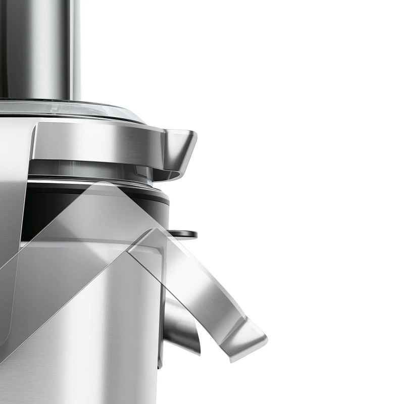 La cheminée de remplissage XXL (84 mm) permet d’introduire avec facilité la plupart des fruits et des légumes entiers (aucun pré découpage)