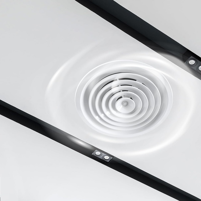 Diffuseur circulaire DCI pour installation au plafond, idéal pour la climatisation ou la ventilation, l'air de ce diffuseur circulaire est propulsé dans toutes les directions, la partie centrale du diffuseur de ventilation est facilement démontable pour une installation aisée, il comprend un pont de montage et une vanne de régulation de type papillon, il est fabriqué en aluminium extrudé de haute qualité.