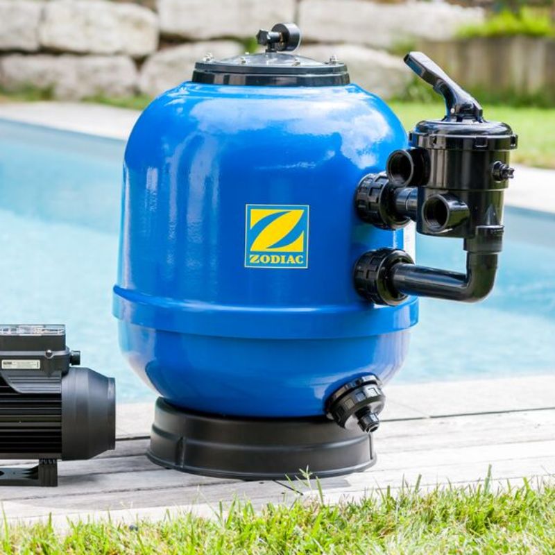 Elément central du système de filtration, le filtre contient un média filtrant (qui peut être du sable, du verre, du textile ou des diatomées selon le type de filtre). Au fur et à mesure que l'eau est filtrée, les particules de saleté sont piégées dans ce lit filtrant avant que l'eau ne soit renvoyée dans la piscine. Les résidus et impuretés retenus dans le corps du filtre sont éliminés par le rétrolavage du filtre (drainage). Il est essentiel d'avoir un système de filtration efficace pour assurer l'efficacité du traitement de l'eau.