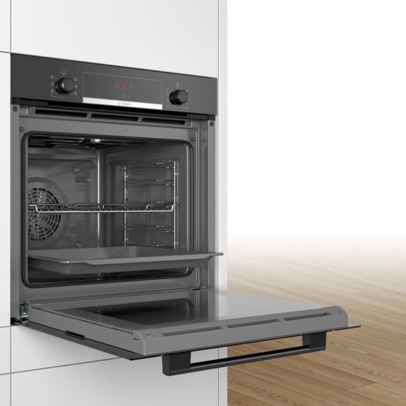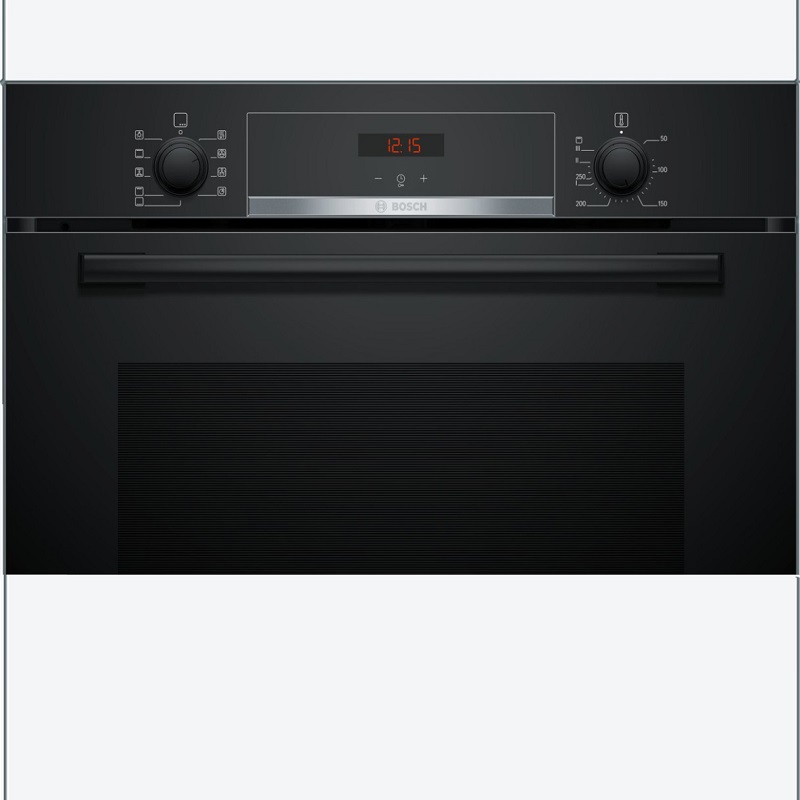 Four Bosch Série 4 HBA534BB0. Taille du four : Moyen, Type de four : Four électrique, Capacité intérieure totale : 71 L. Type d’installation : Encastrable, Couleur : Noir, Type de commandes : Rotatives et tactiles. Type d’horloge : Électronique, Type de minuterie : Numérique. Classe énergétique : A, Consommation d’énergie (chaleur traditionnelle) : 0,97 kWh, Consommation d’énergie (chaleur tournante) : 0,81 kWh