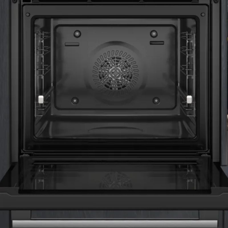 Grâce aux rails télescopiques, les plaques et les grilles peuvent être facilement retirées du four ; les rails les maintiennent fermement en place. Vous profitez ainsi pleinement de votre expérience du début à la fin. Assistant de nettoyage humidClean