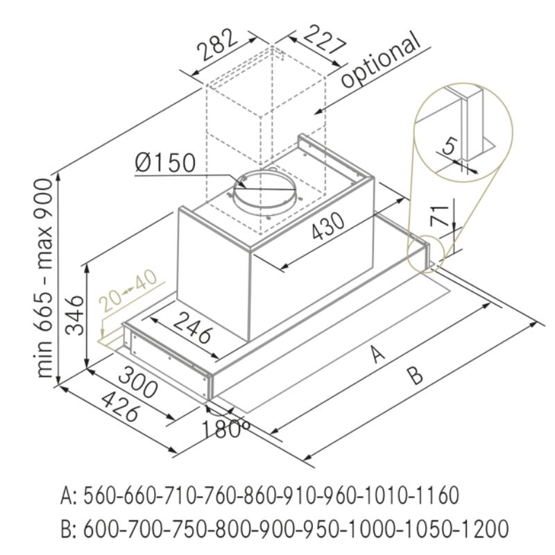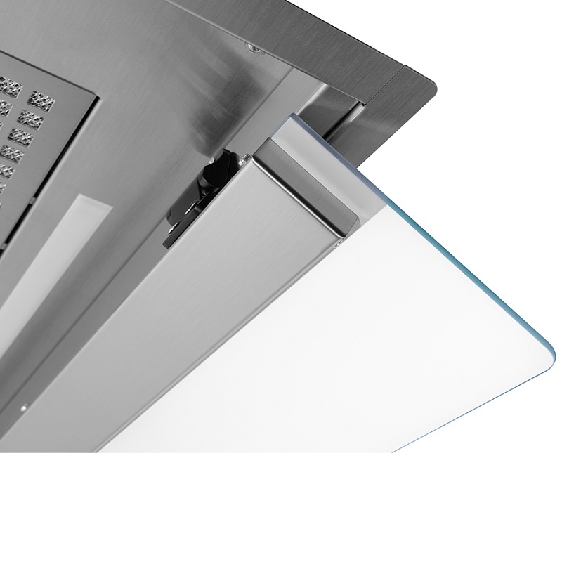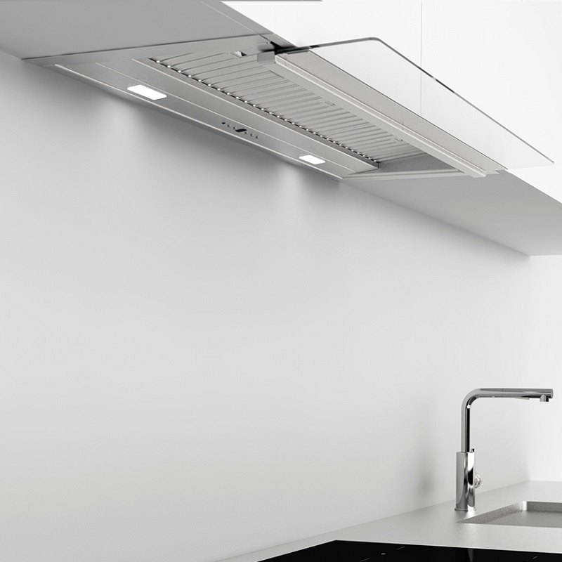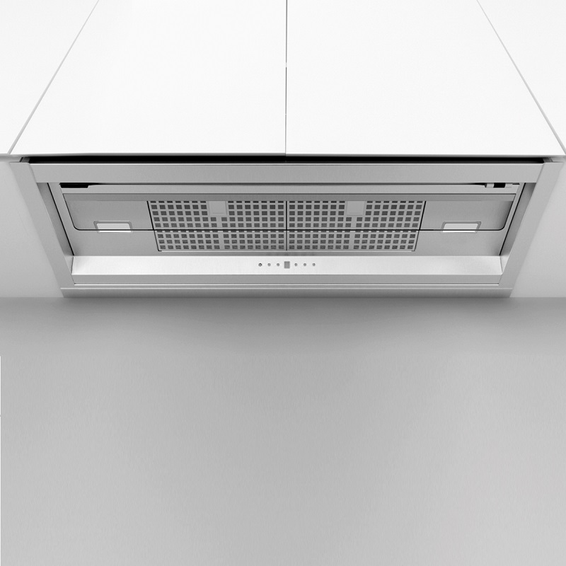 La hotte d’intégration Note de Frecan fabriqué toute en acier inoxydable est totalement intégré sous le meuble en passant complètement inaperçue. Grâce à sa visière abattante, ce modèle de hotte permets une aspiration perimetral (avec la visière fermée) ou traditionnel (avec la visière ouverte) en permettant cette dernière une mieux aspiration en travaillant avec les feux de devant de la zone de cuisson.