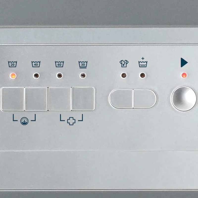 Boutons faciles à sélectionner pour choisir le bon programme et l’option. Bruit réduit grâce au système d’absorption des chocs : inférieur à 62 dB dans le processus de lavage