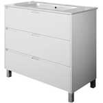 Il s'agit d'un meuble de salle de bain en mélamine de 16 mm, doté de 3 tiroirs à extraction partielle avec finition textile et guides Hettich, à fermeture amortie, avec lesquels vous pourrez garder vos articles et accessoires de salle de bain organisés et toujours à portée de main.