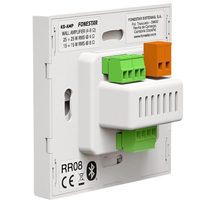 Le Fonestar KS-WALL est un kit audio tout-en-un comprenant deux haut-parleurs de plafond et un amplificateur mural. Grâce à ses nombreuses options de lecture, telles que Bluetooth/USB, un tuner FM avec 50 stations préréglées et deux entrées auxiliaires, il élargit vos possibilités et vous permet de profiter de la musique diffusée par n'importe quel appareil doté d'une sortie ligne.