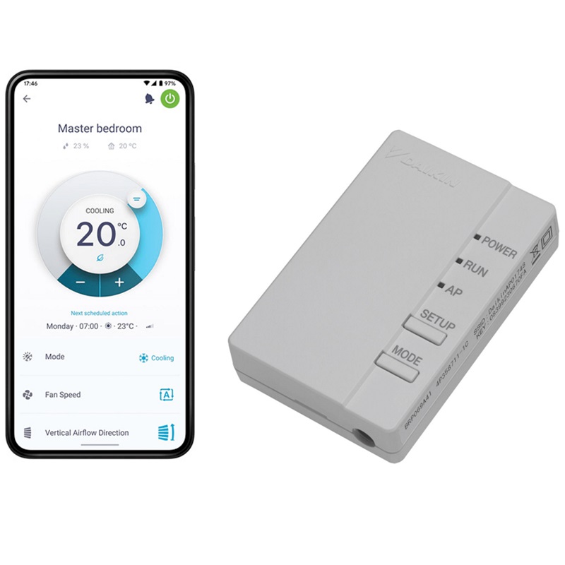Le Smart Wi-Fi de Daikin est un contrôleur en ligne qui permet le réglage à distance de n'importe quelle fonction du climatiseur, de manière simple et intuitive, via le contrôle d'un PC, d'une tablette ou d'un smartphone.