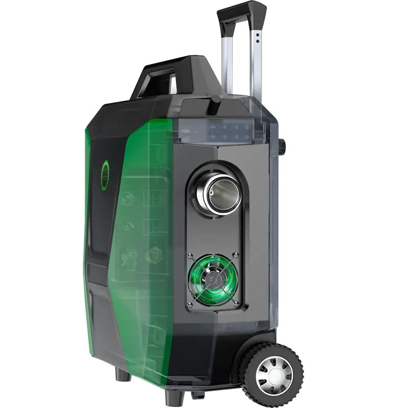 Les roues et la poignée télescopique facilitent le transport. Un compartiment de rangement intégré permet de garder tous vos accessoires organisés et facilement accessibles entre deux utilisations, pour une portabilité optimale.