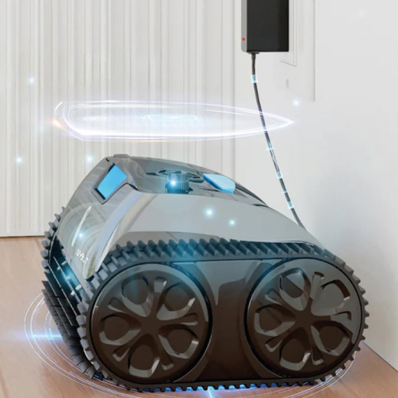 Aspirateur robot ETRON i20NG sans fil avec contrôle APP mobile qui fonctionne de manière autonome sans avoir besoin d'équipements supplémentaires tels que des tuyaux ou des pompes de surpression. Son moteur moderne à trois cylindres offre une expérience de nettoyage puissante et efficace , et s'adapte à tous les types de piscines.