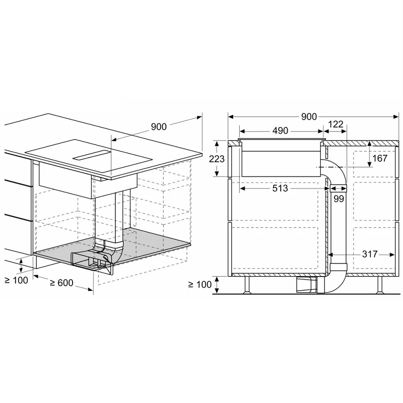 Hauteur d'installation minimale : 490 mm