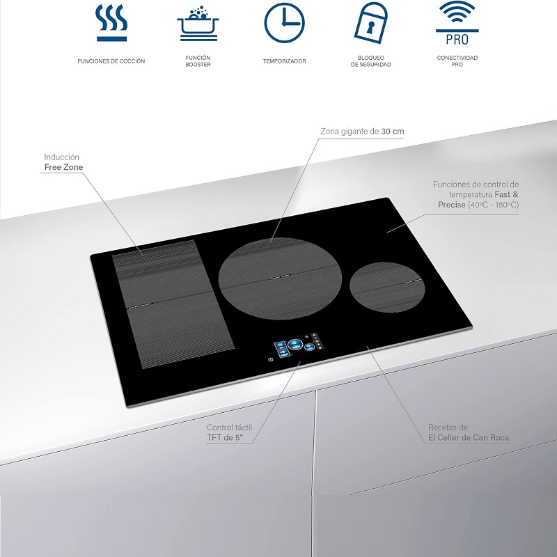 Grâce à ses 9 niveaux de puissance et à la fonction Booster, vous pouvez cuisiner rapidement et efficacement. L'écran tactile TFT de 5 pouces permet un réglage simple et rapide de la température. La plaque à induction Cata IDF 8021 PRO BK est également équipée d'une minuterie et d'une détection des récipients, pour une cuisine encore plus facile.