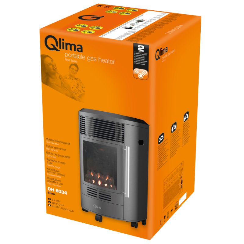 Le poêle à gaz design Qlima GH 8034 propose 6 niveaux de chaleur, il permet d’ajuster la puissance à la température souhaitée, ce luxueux poêle à gaz dévoile une belle finition avec ses portes en verre et sa poignée chromée, les braises artificielles recréent l’ambiance chaleureuse des cheminées d’autrefois.