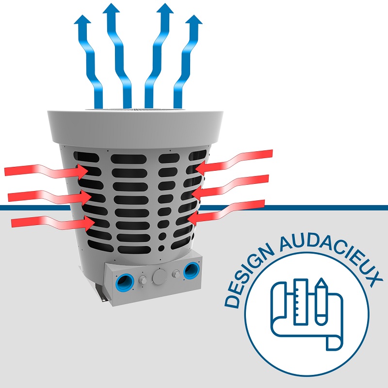 Sa ventilation en vertical évite l’évacuation de l’air vicié sur la surface de pose et permet un gain de place important à l’installation.