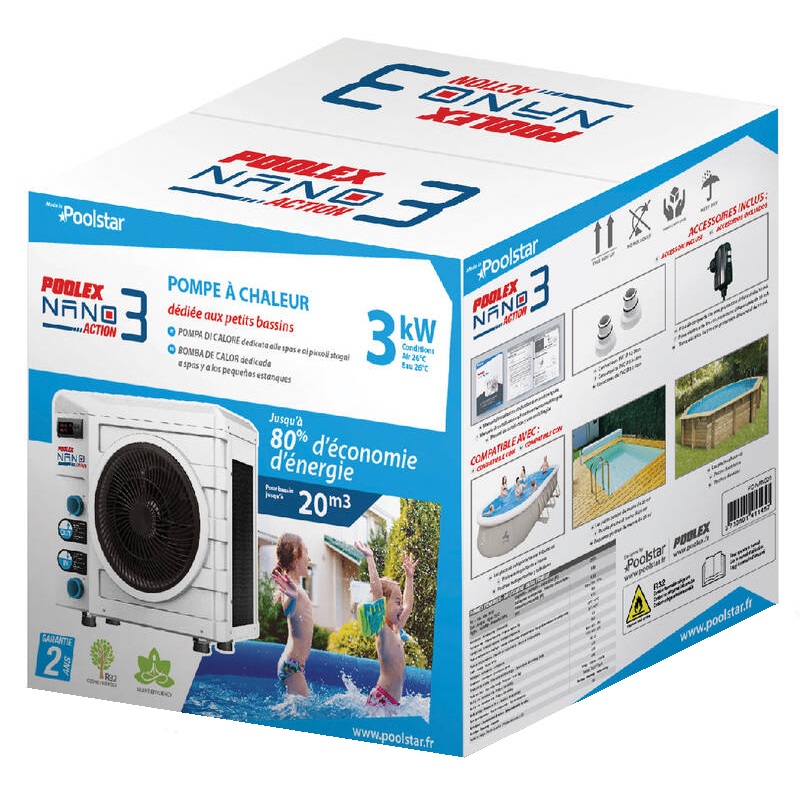 Pompe à Chaleur Poolex Nano Action A3 600 W. Volume Bassin 10 à 21 m3