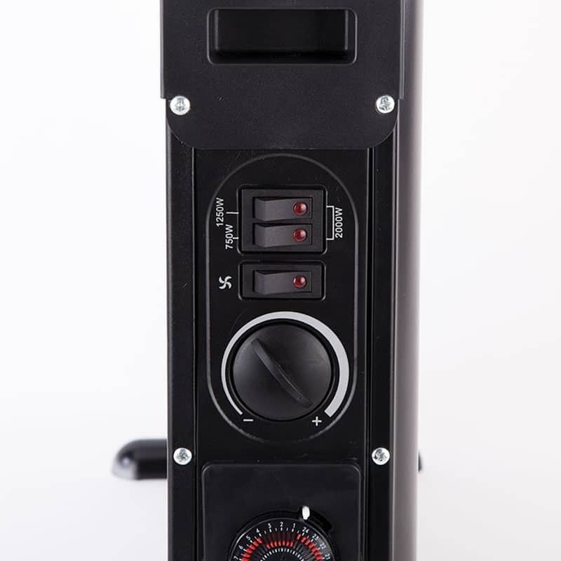 Il dispose de 3 puissances de chaleur pour optimiser la consommation d'énergie (faible : 750 W/moyenne, 1250 W/ haute, 2000 W) et d'un thermostat réglable qui vous permet de sélectionner la température dont vous avez besoin à tout moment
