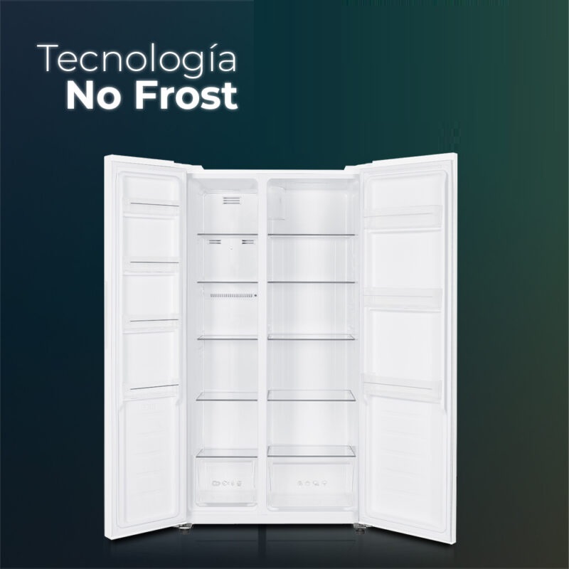 Ce réfrigérateur No Frost est équipé d'un moteur Inverter et utilise le réfrigérant R600a. Classé E en efficacité énergétique, il affiche un niveau sonore maximal de 39 dB. Son design blanc comprend deux portes encastrées avec poignées intégrées. L'éclairage intérieur est assuré par des LED. Le système de commande tactile est doté d'un écran LED, du dégivrage automatique et d'autres fonctions conçues pour optimiser les performances du réfrigérateur. D'une capacité totale de 442 litres, il intègre un congélateur 4 étoiles et de multiples compartiments pour un rangement optimal.