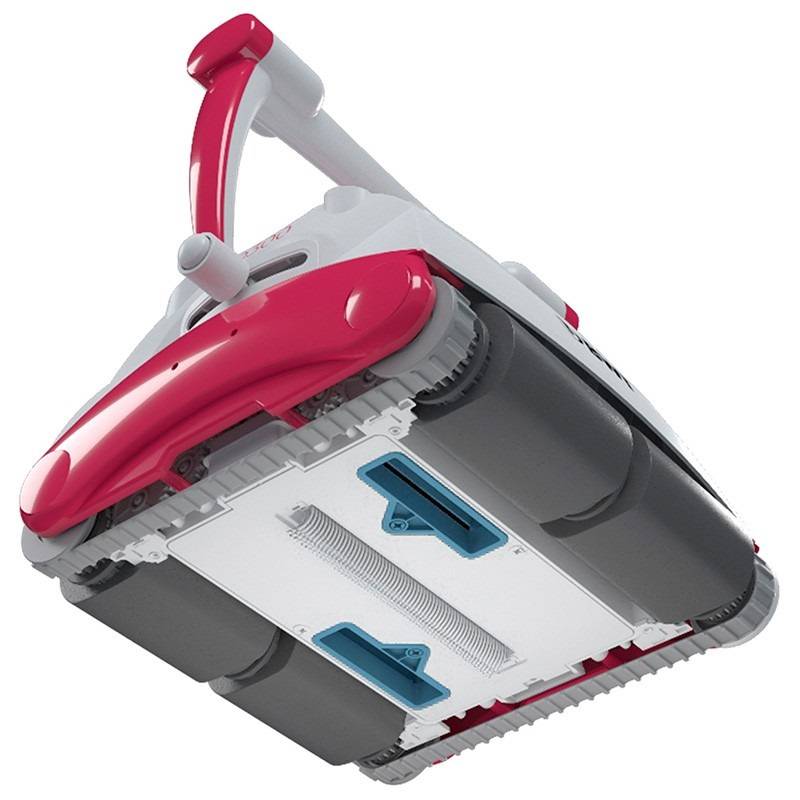 Il intègre également un système de nettoyage efficace avec une brosse inférieure oscillante qui, avec les brosses PVA, laisse toute surface totalement exempte de saleté (carrelage, liner, polyester, etc.).