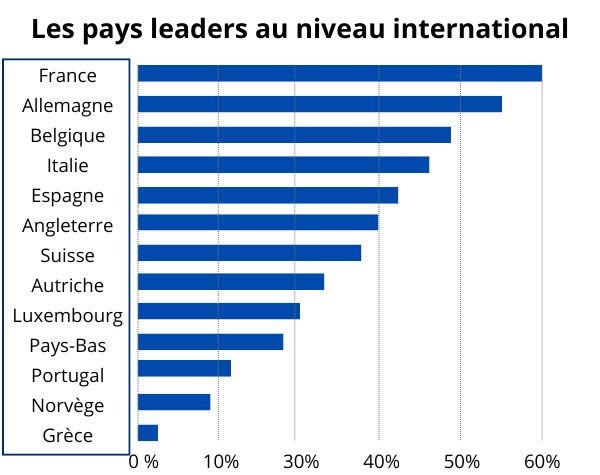 On observe une forte présence de la France, premier partenaire commercial de l'Allemagne. Immédiatement après, mais toujours en plus petit nombre, la Belgique et l'Italie.
