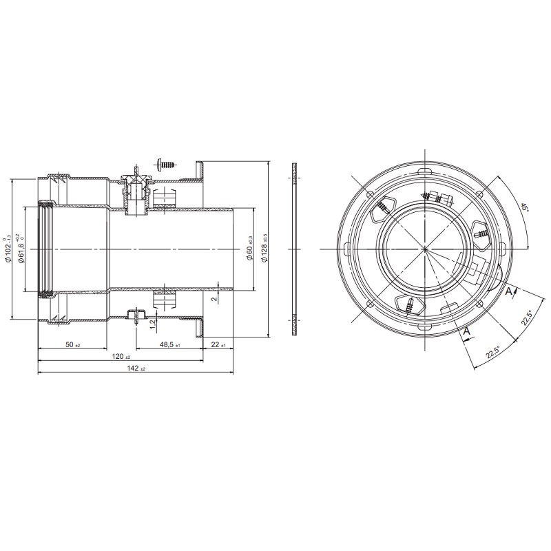 Diamètre coaxial : Ø60/Ø100
