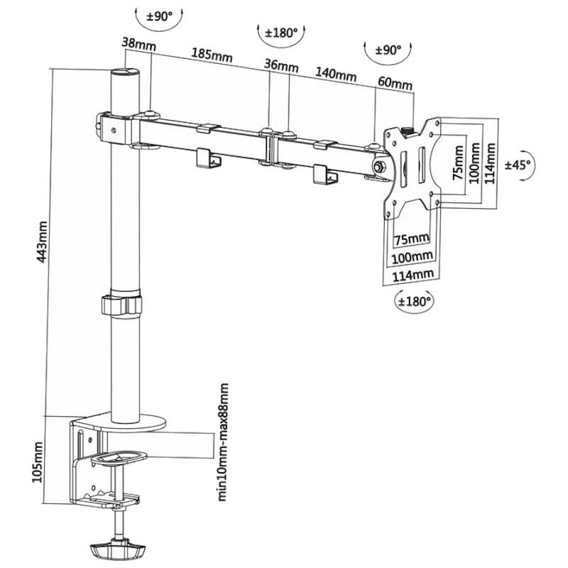 Fabriqué en acier à haute résistance et peint avec une peinture électrostatique pour une finition parfaite, l'installation sur la table est autorisée à travers une pince ou à travers une vis, il a des dimensions maximales de 10 x 10 cm et admet un poids maximum de 8 Kg