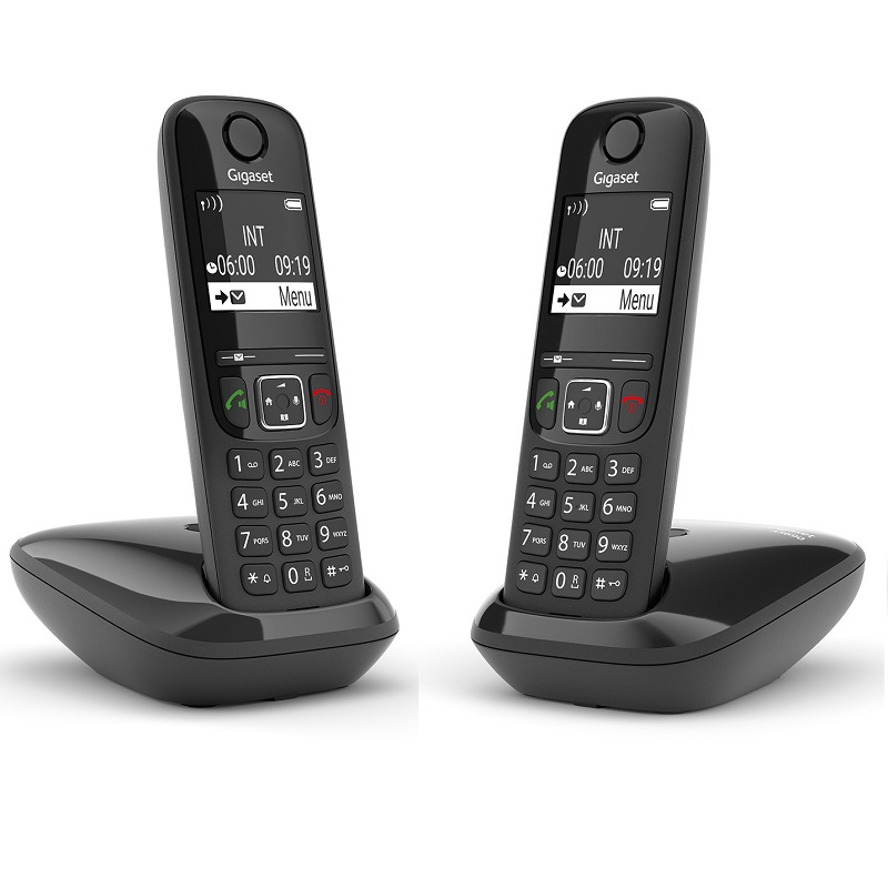Les téléphones Gigaset AS690 Duo de la marque Gigaset allient esthétisme et praticité avec leur technologie sans fil, equipés d'un écran rétro éclairé, les combinés affichent le nom et le numéro de l'appelant, vous pouvez d'ailleurs bloquer les appels de numéros, chaque répertoire peut accueillir 100 contacts afin d'enregistrer les coordonnées de nombreux clients, partenaires et fournisseurs.
