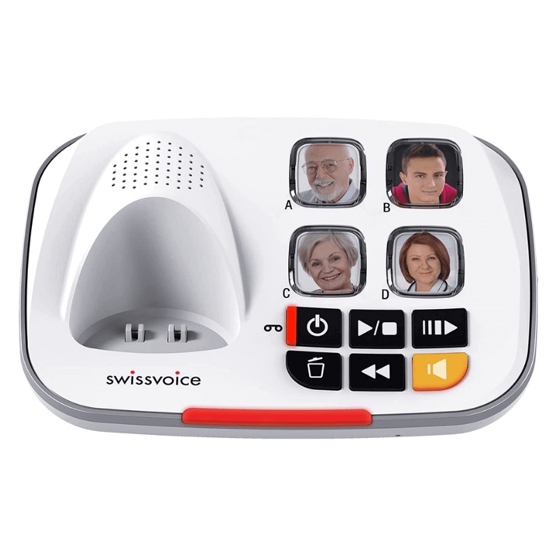 Amplification audio de 40dB par simple pression sur un bouton, compatible avec les aides auditives, volume de la sonnerie réglable jusqu'à 90dB et indicateur visuel de sonnerie, contrôle de la tonalité avec trois profils auditifs