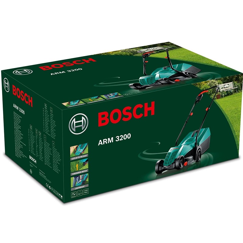 Tondeuse à gazon électrique Bosch Arm 3200, la tondeuse à gazon Bosch Arm 3200 est le moyen le plus rapide d'obtenir une pelouse bien entretenue, équipée d'un puissant moteur de 1 200 W, elle coupe l'herbe longue et épaisse sans effort et de manière fiable, tandis que les peignes à herbe assurent un bord propre le long des murs et des clôtures. .