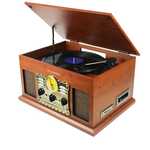 Platine tournante à 3 vitesses, connectivité Bluetooth, radio FM et connexions USB et RCA, entre autres
