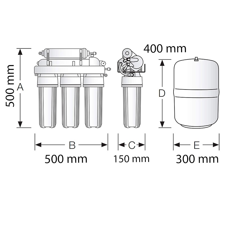 O.I. 5 étapes. Filtration + déchloration UDF + déchloration CTO + membrane O.I. + GAC en ligne.