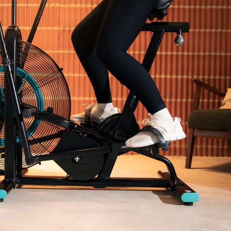 Résistance de l'air : Plus la puissance appliquée pendant l'entraînement est importante, plus la résistance du vélo est grande. Ventilateur de 62 cm de diamètre.