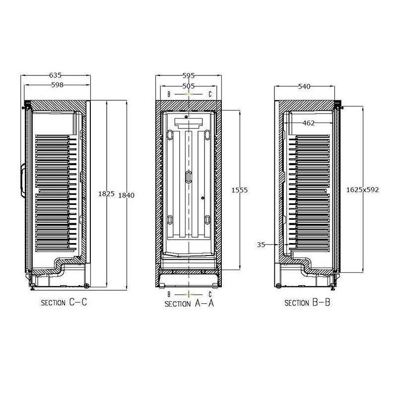 Nos armoires utilisent le réfrigérant écologique R600a et fonctionnent sous une tension de 230 V/50 Hz. La répartition homogène du froid à l'intérieur est assurée par la conception du système de réfrigération ventilé, qui comprend un évaporateur à tirage forcé.